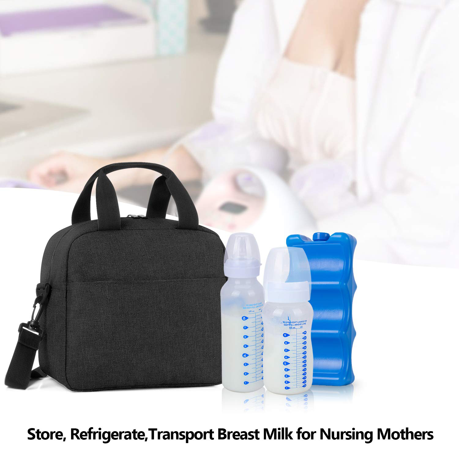 Дом / Продукты / Сумка-холодильник и сумка для обеда / Сумка-холодильник / Изготовленный на заказ контейнер сумки охладителя грудного молока Тоте высокого качества изолированный слингом для 6 бутылок с плечевым ремнем