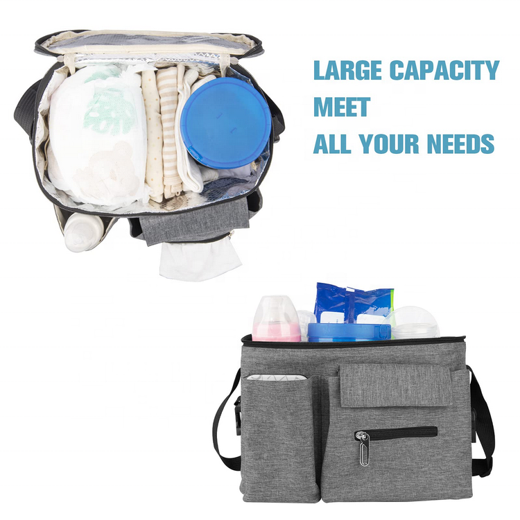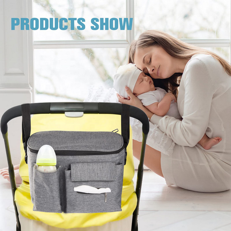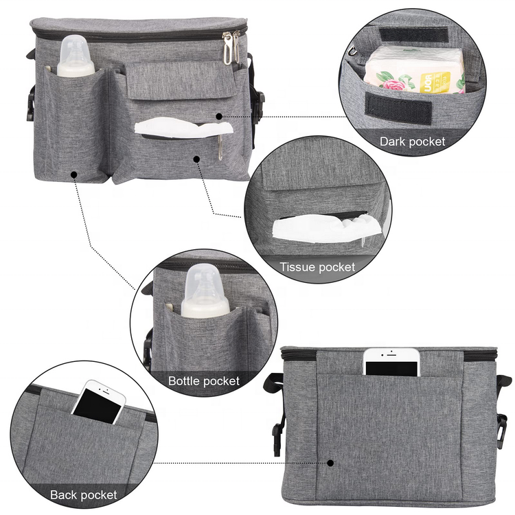Дом / Продукты / Сумка путешествий / Организатор путешествий / Органайзер для детских колясок с подстаканником и несколькими карманами, подвесной стиль, органайзер для бутылочек для подгузников, игрушки для хранения, органайзер для коляски