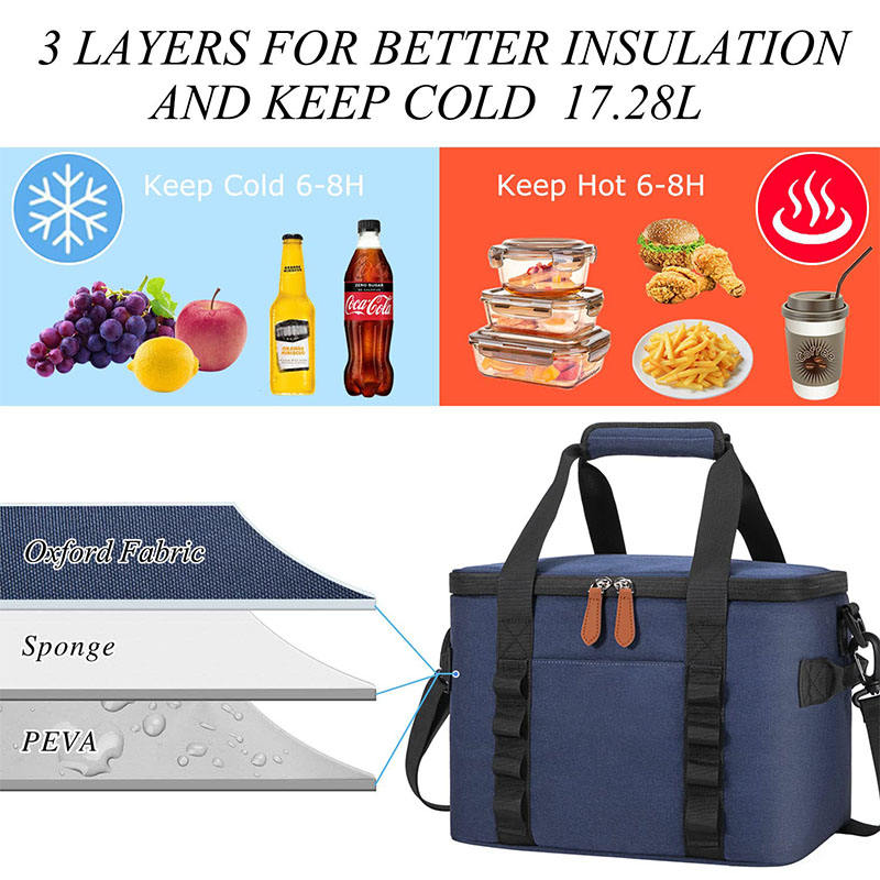 Большая двухслойная теплоизолированная сумка-холодильник с термосумкой для хранения еды, обеда и напитков холодными с ручкой для пикника