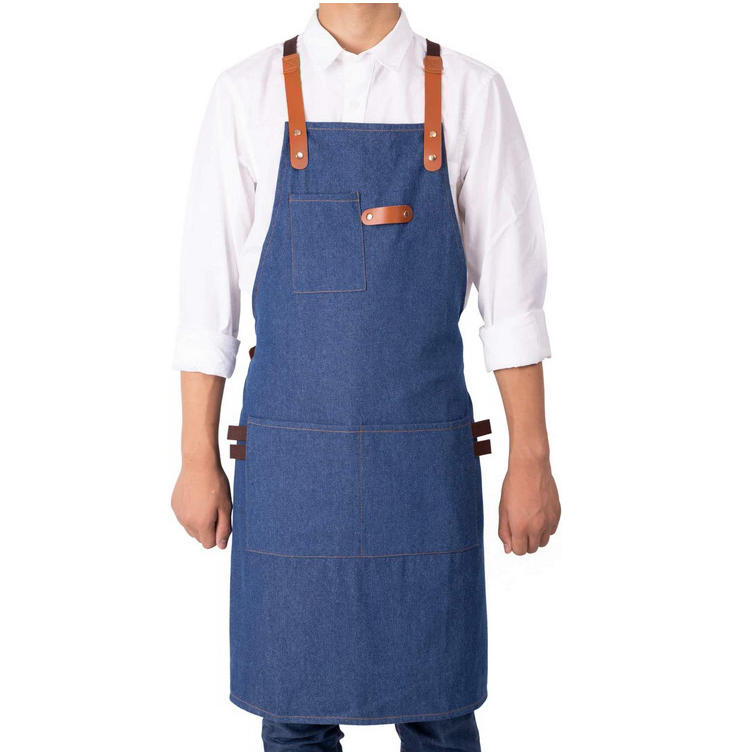 Джинсовый кухонный фартук для мужчин и женщин, шеф-повар с перекрещивающимися лямками на спине