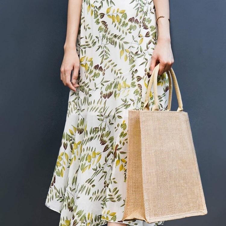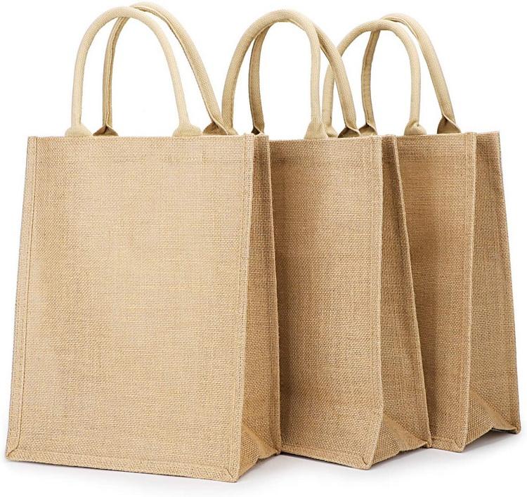 Экологичная джутовая большая сумка Сумки из мешковины с ручками Многоразовая продуктовая сумка для женщин Покупки Tote Простые джутовые сумки